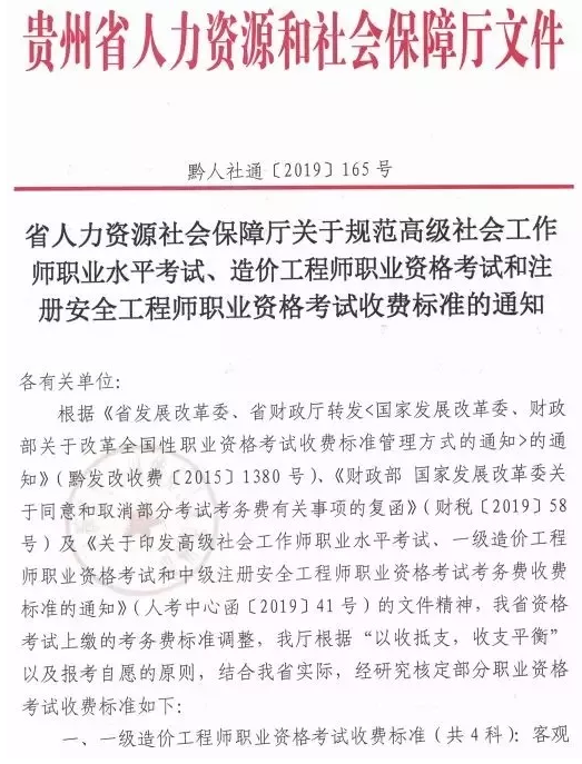 貴州省發(fā)布《關于規(guī)范高級社會工作師職業(yè)水平考試、造價工程師職業(yè)資格考試和注冊安全工程師職業(yè)資格考試收費標準的通知》通知中顯示了2019年中級安全工程師考試的報名費用,一起來看看吧!