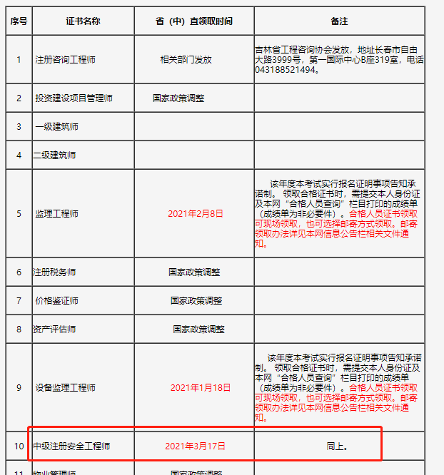 吉林省發(fā)布2020年安全工程師證書領(lǐng)取時間