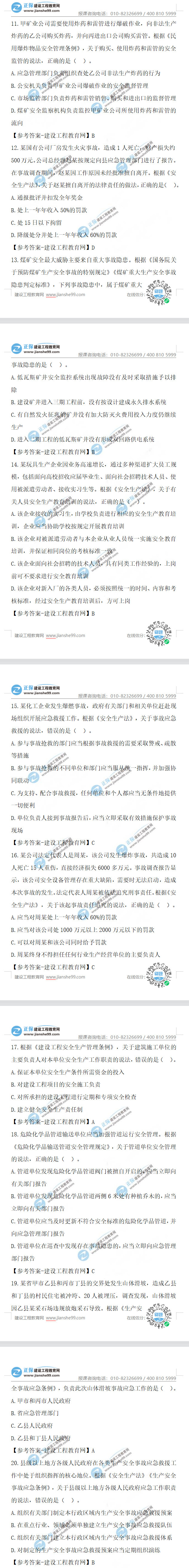 2021年安全工程師法律法規(guī)試題及答案解析11-20題