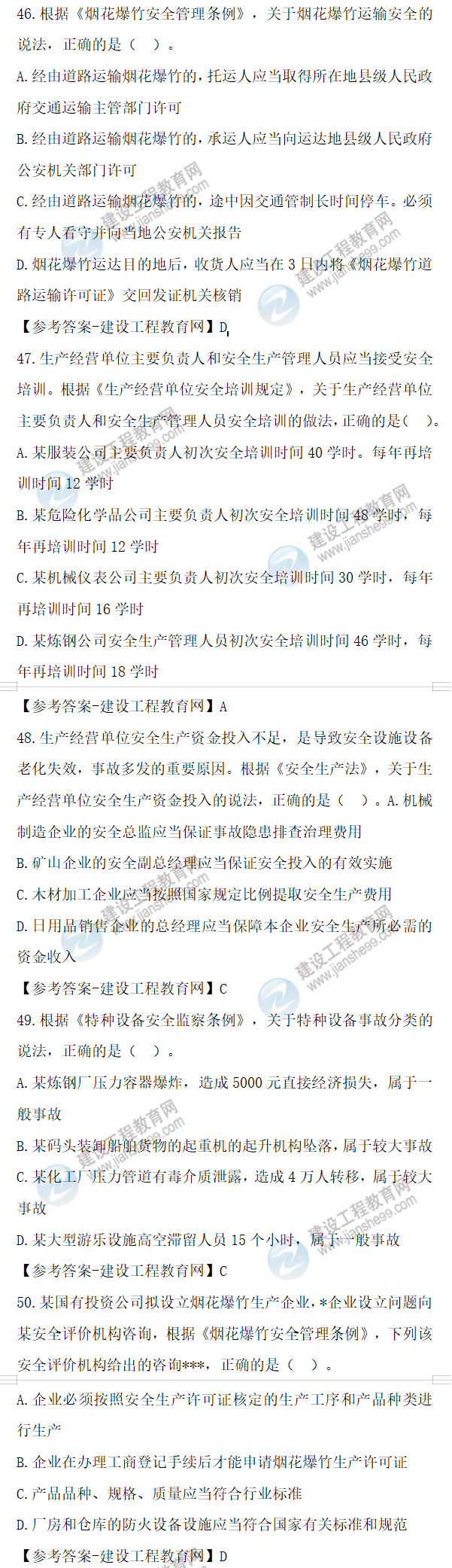 2022年安全工程師法律法規(guī)試題及答案解析41-50題