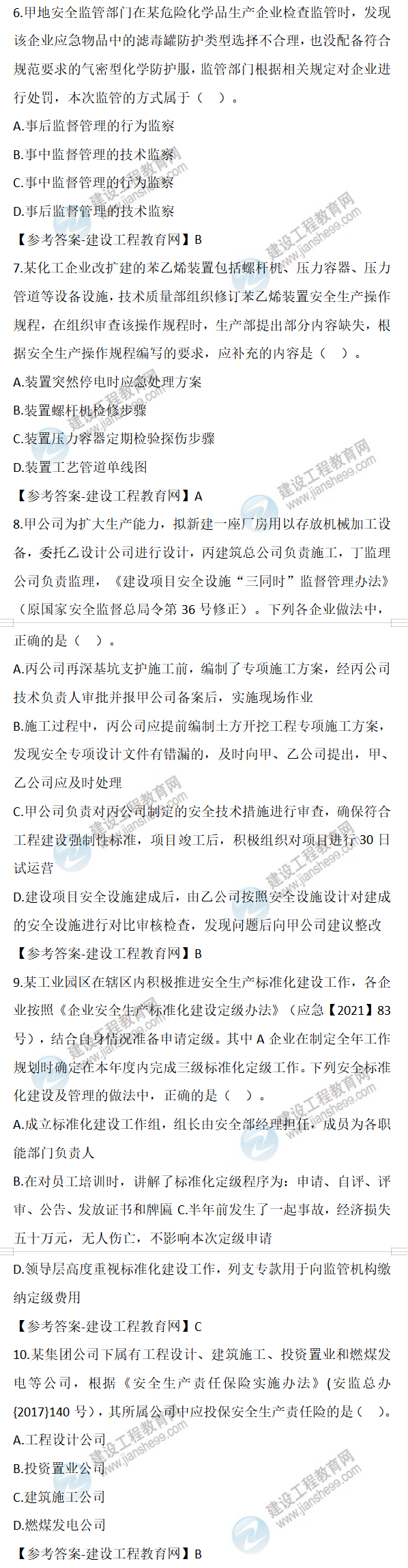 2022年安全工程師生產(chǎn)管理試題及答案解析1-10題