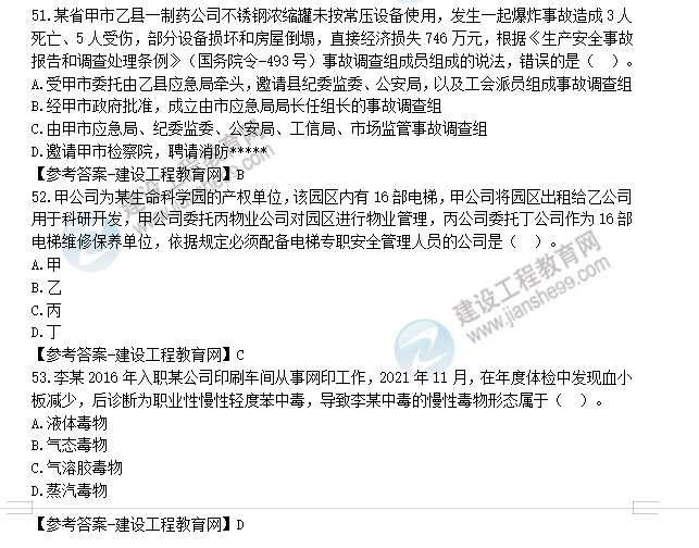 2022年安全工程師生產(chǎn)管理試題及答案解析51-60題