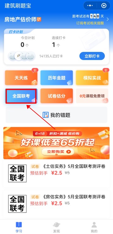 點擊“全國聯(lián)考”進入考試入口。
