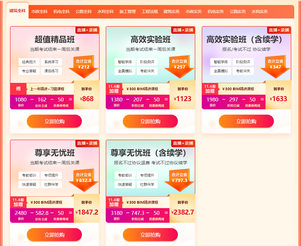活動期間網(wǎng)校房地產(chǎn)估價師超值精品班、高效實驗班、尊享無憂班享爽11專享折扣,最高可享6.7折!