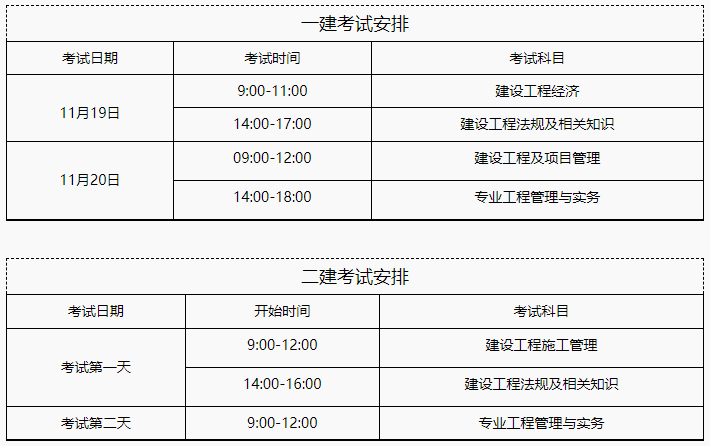 從考試安排來看:一級建造師執(zhí)業(yè)資格考試以筆試的方式進行,為閉卷考試。實行統(tǒng)一大綱、統(tǒng)一命題、統(tǒng)一組織的考試制度,由人事部、建設部共同組織實施,每年舉行一次考試;二建由于各省自主命題,考試時間需參照各省的人事考試中心網(wǎng)站。在科目上,二建比一建少考一項科目。具體考試時間和考試科目如下。