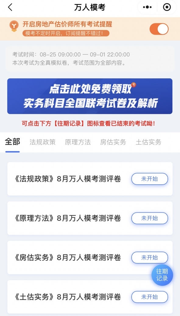 房地產(chǎn)估價師8月萬人??紩r間:8月25日9點-9月1日22點