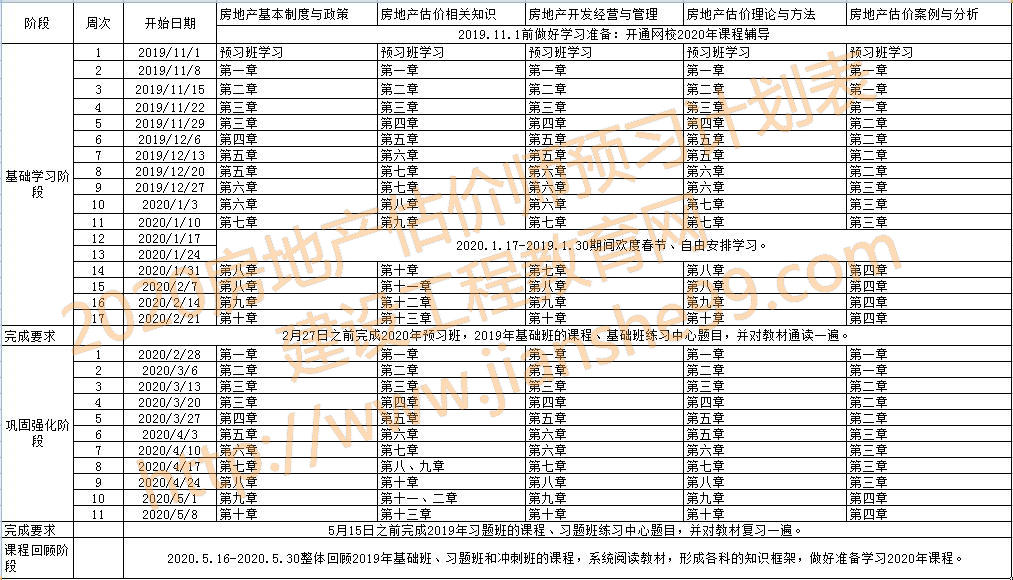 【收藏】2020年房地產(chǎn)估價(jià)師考試預(yù)習(xí)計(jì)劃表