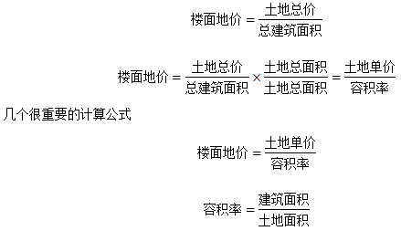 土地總價=土地單價×土地面積=樓面地價×建筑面積