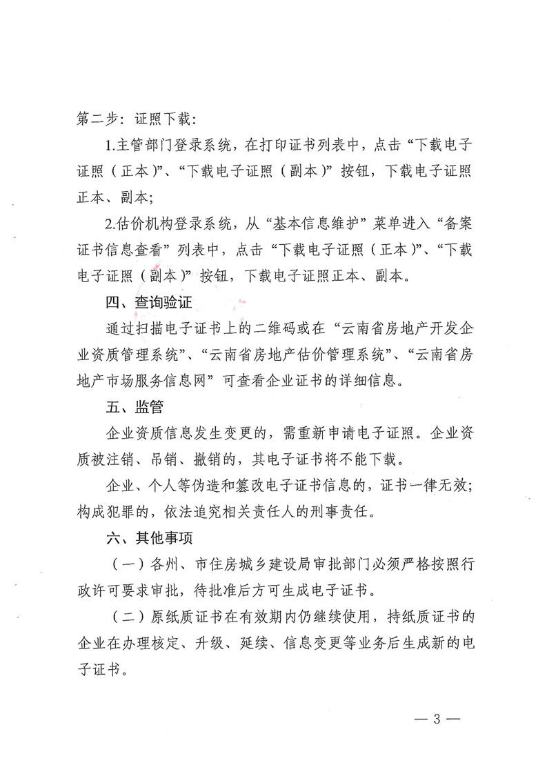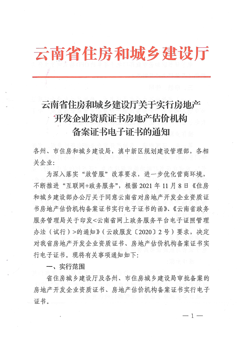云南省房地產(chǎn)估價機構(gòu)備案證書電子證書的通知