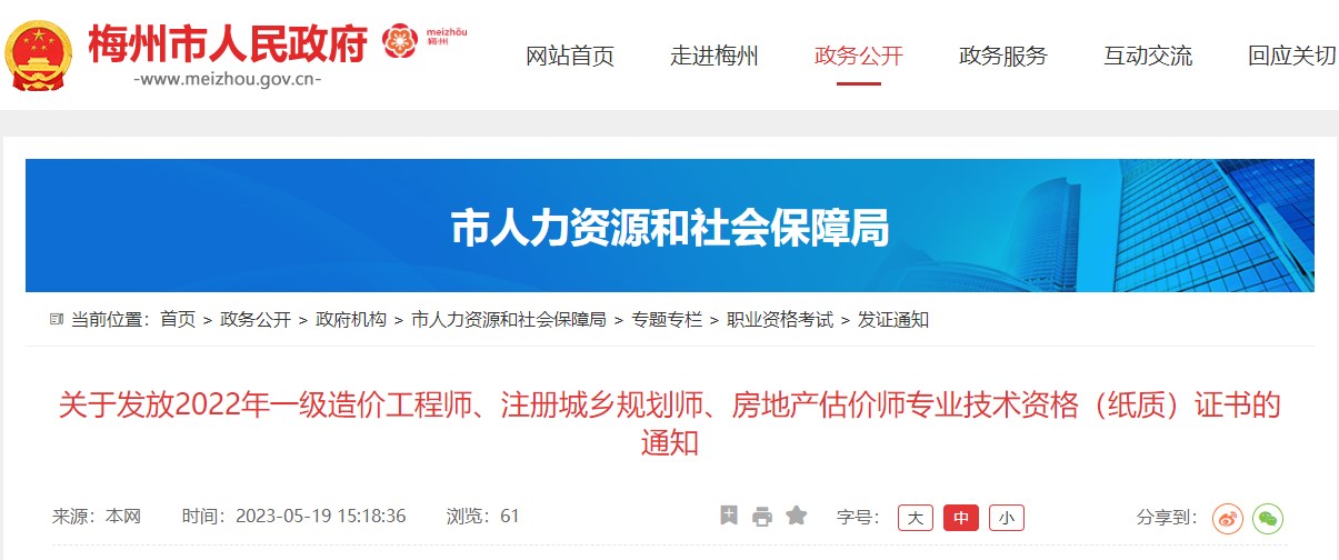 廣東梅州2022年房地產(chǎn)估價師證書發(fā)放通知