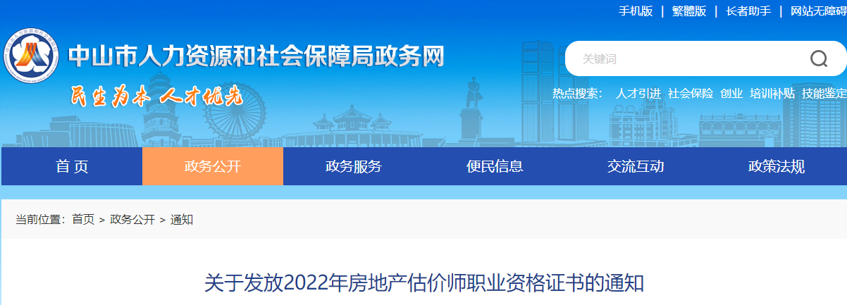 廣東省中山市關(guān)于發(fā)放2022年房地產(chǎn)估價(jià)師職業(yè)資格證書的通知