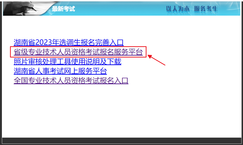 報(bào)考人員應(yīng)登錄湖南人事考試網(wǎng)(),點(diǎn)擊“網(wǎng)上報(bào)名”中的“省級專業(yè)技術(shù)人員資格考試服務(wù)平臺”,簡稱“網(wǎng)報(bào)平臺”,下同)進(jìn)行報(bào)名。報(bào)名流程有注冊登錄、注冊核查、報(bào)名信息填報(bào)、報(bào)名核查、網(wǎng)上繳費(fèi)等5個(gè)步驟。