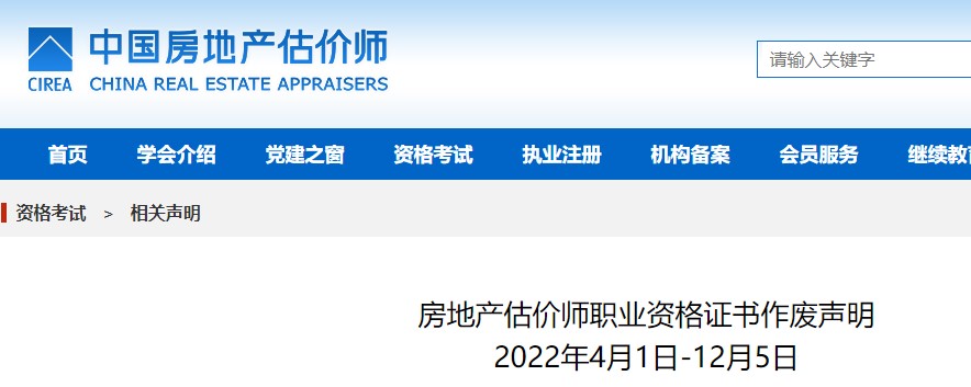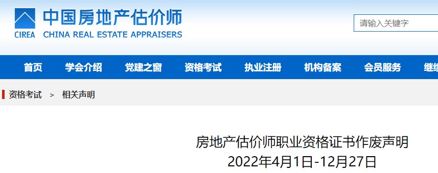 中房學(xué)發(fā)布房地產(chǎn)估價師職業(yè)資格證書作廢聲明(4月1日-12月27日)