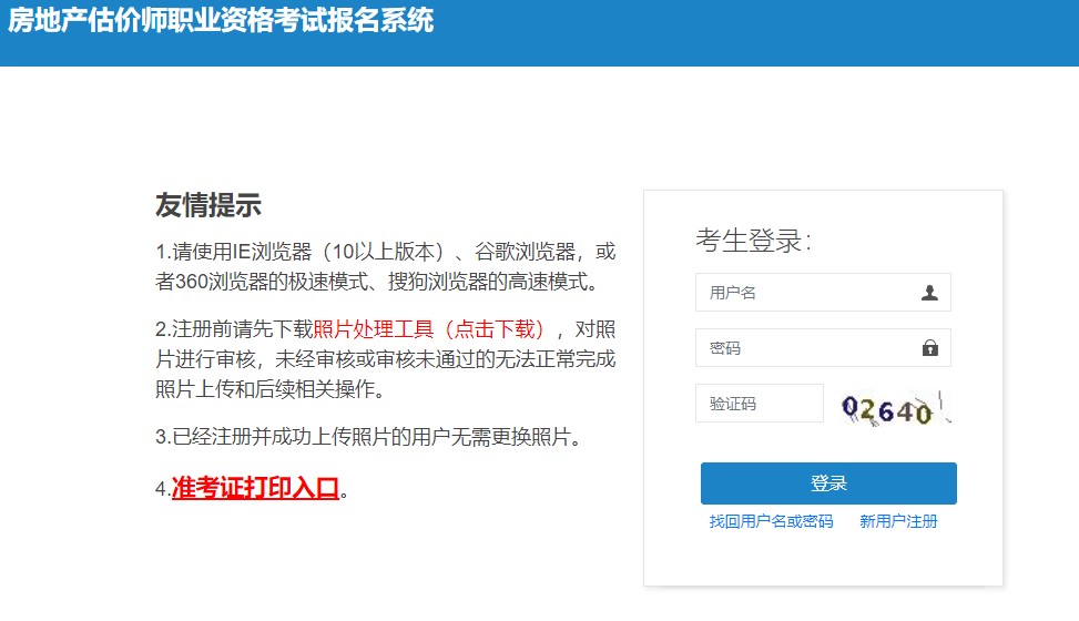 準(zhǔn)考證打印入口:房地產(chǎn)估價(jià)師職業(yè)資格考試報(bào)名系統(tǒng)