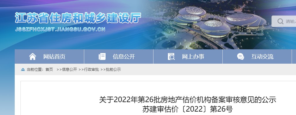 江蘇省關(guān)于2022年第26批房地產(chǎn)估價機構(gòu)備案審核意見的公示