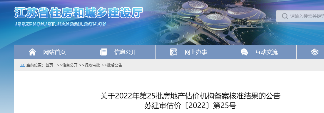 江蘇省?關于2022年第25批房地產(chǎn)估價機構備案核準結果的公告