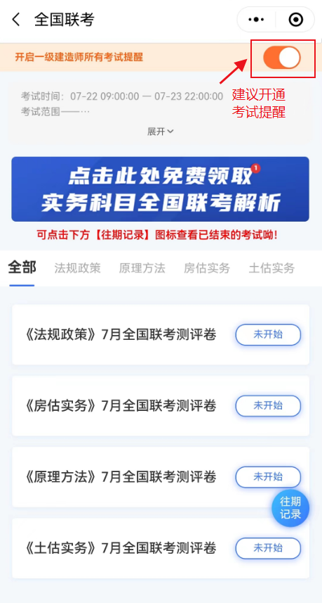 建議開通考試提醒,避免錯(cuò)過(guò)房地產(chǎn)估價(jià)師考試。