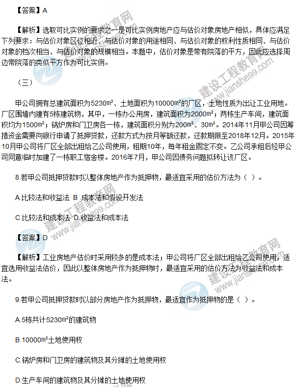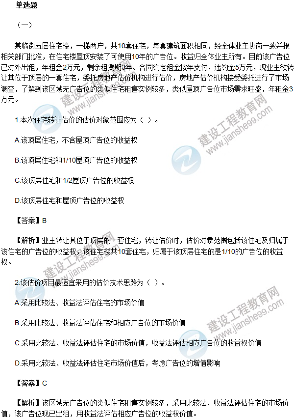 2016年房地產(chǎn)估價(jià)師《案例與分析》試題解析單選題1-10