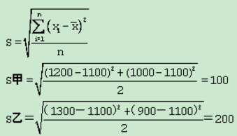1200和1000與1100的偏差,一定比1300和900比1100的偏離程度小,所以計(jì)算出的標(biāo)準(zhǔn)差一定前者小,所以前者風(fēng)險(xiǎn)小。