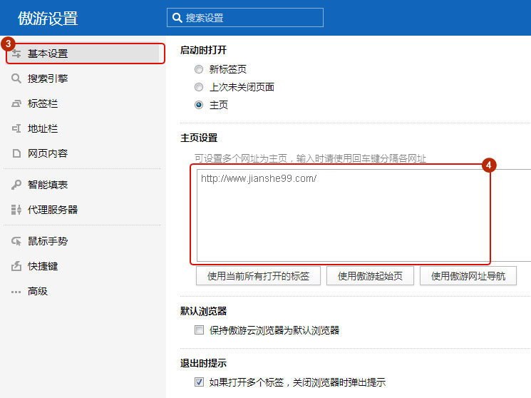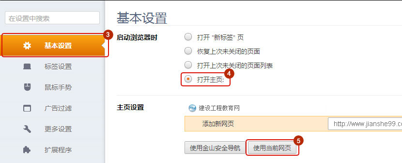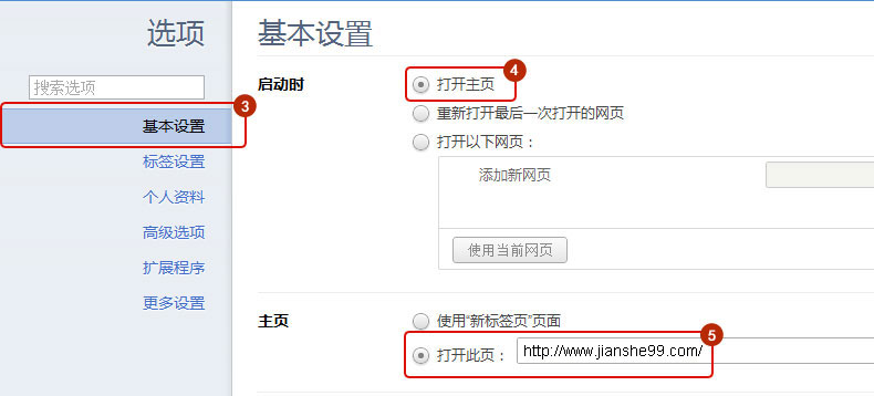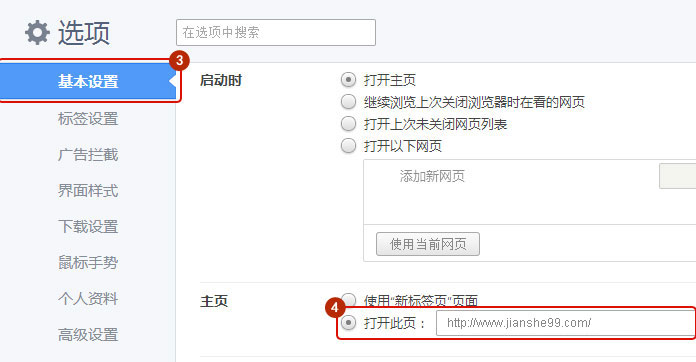 選擇基本設置,在主頁設置里輸入網(wǎng)址。