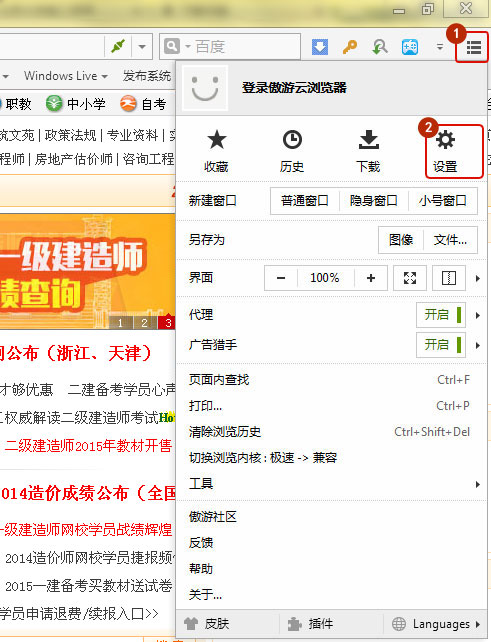 打開傲游瀏覽器-點右上角小扳手-設置,如圖所示: