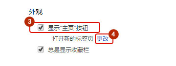 外觀內(nèi)-勾選 顯示主頁按鈕-點更改