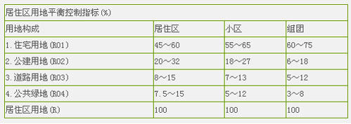 2、居住用地構(gòu)成中,各項(xiàng)用地面積和所占比例應(yīng)符合下列規(guī)定: