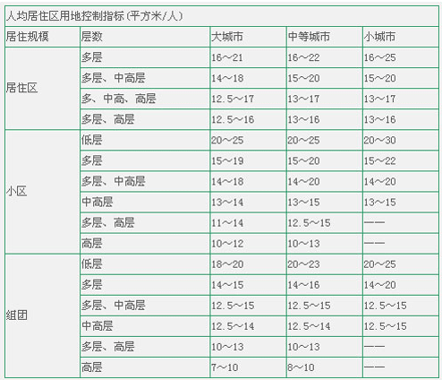 3、人均居住區(qū)用地控制指標(biāo),應(yīng)符合以下圖表中的規(guī)定。