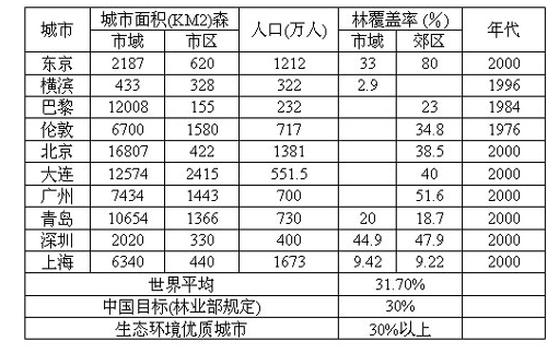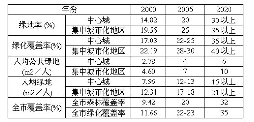 2、城市化地區(qū)的綠化指標(biāo)仍然較低,2000年園林綠化指標(biāo)低于1999年全國城市的平均值和國家園林城市標(biāo)準(zhǔn),其中中心區(qū)綠化指標(biāo)更低。全市森林覆蓋率僅及全國平均水平的一半,市郊缺乏大型生態(tài)林地。
