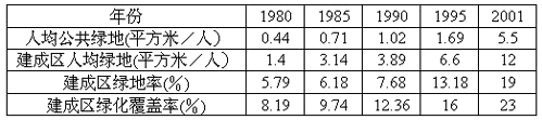 附表一:1980-2001年上海城市綠化指標(biāo)變化