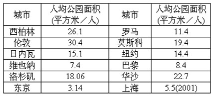 城市化地區(qū)(1)。人均公共綠地10平方米以上。
