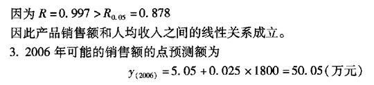 某產(chǎn)品過去5年的銷售額與目標(biāo)市場人均收入的數(shù)據(jù)如表2,預(yù)計2006年該產(chǎn)品的目標(biāo)市場人均收人為1 800元。