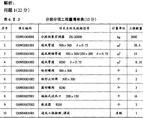 1.根據(jù)《建設(shè)工程工程量清單計價規(guī)范》的規(guī)定,編列出該工程的分部分項工程單項目,將相關(guān)內(nèi)容填入答題紙表6.Ⅱ.3 中,并在答題紙表6.Ⅱ.3的下面列式計算通風(fēng)管道的工程量。