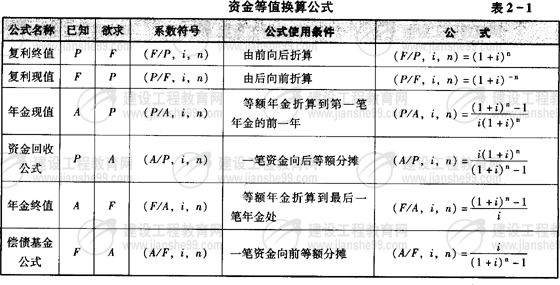 本節(jié)內(nèi)容有3個重點,資金時間價值的相關(guān)概念、資金等值計算、名義利率與有效利率。資金時間價值的絕對尺度是利息,相對尺度是利率,教材中關(guān)于利息、利率的含義、決定因素、作用等內(nèi)容應(yīng)注意理解。資金等值計算要求六個公式必須熟記,并會靈活運用,近年來在此處出題都是復(fù)雜現(xiàn)金流量的計算題,綜合性較強。一方面要求考生知道公式適用的條件,另一方面要求能用公式正確地進行計算。尤其要注意正確地畫現(xiàn)金流量圖,是資金等值計算的前提條件。年金計算一般比較容易出錯。資金等值計算公式見表2-1.