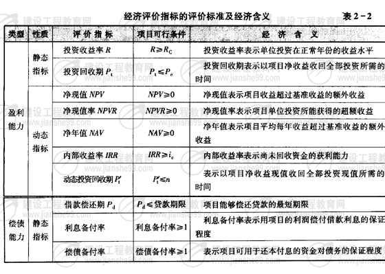 1.經(jīng)濟評價指標(biāo)的決策規(guī)則及涵義(表2-2)