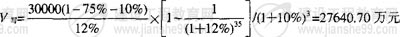 3000×(1+5%)×(1-30%)/(1+10%)×5=10022.73萬(wàn)元