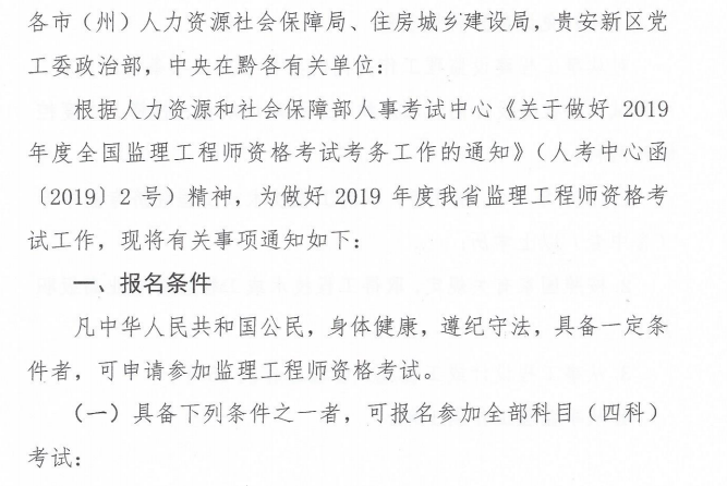 貴州2019年全國監(jiān)理工程師資格考試考務工作的通知