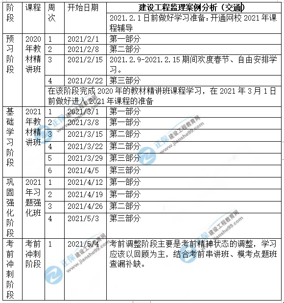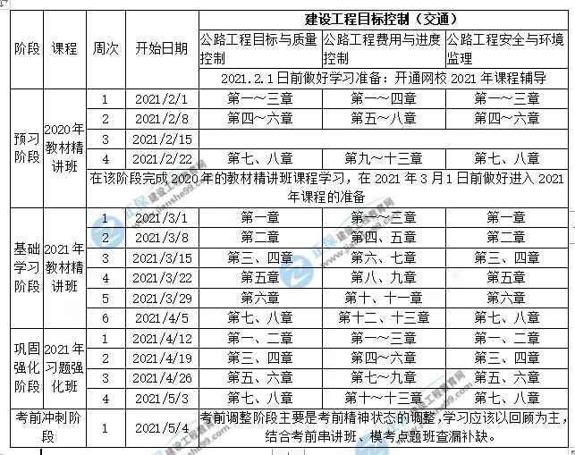 2021年監(jiān)理交通控制預(yù)習(xí)計(jì)劃表(2月1日-考試)