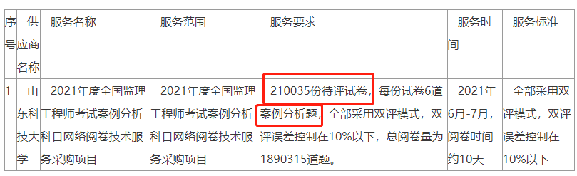 根據(jù)中國建設監(jiān)理協(xié)會發(fā)布的2021年度全國監(jiān)理工程師考試案例分析科目網(wǎng)絡閱卷技術服務采購項目中標公告,我們可以看到今年共有210035份代評案例試卷,側(cè)面說明今年共有210035人參加了案例科目考試,那么我們可以推算一下,考全科的人一定會考案例,考案例的人不一定會考全科,再有一些人單獨報考合同管理、理論法規(guī)、目標控制,那么也就是說明今年參加考試的人員多于待閱試卷人數(shù),因為案例考試難度較大,單數(shù)報考的人數(shù)較多,以此小編預計今年參加的人數(shù)在25-30萬左右,供考生參考。
