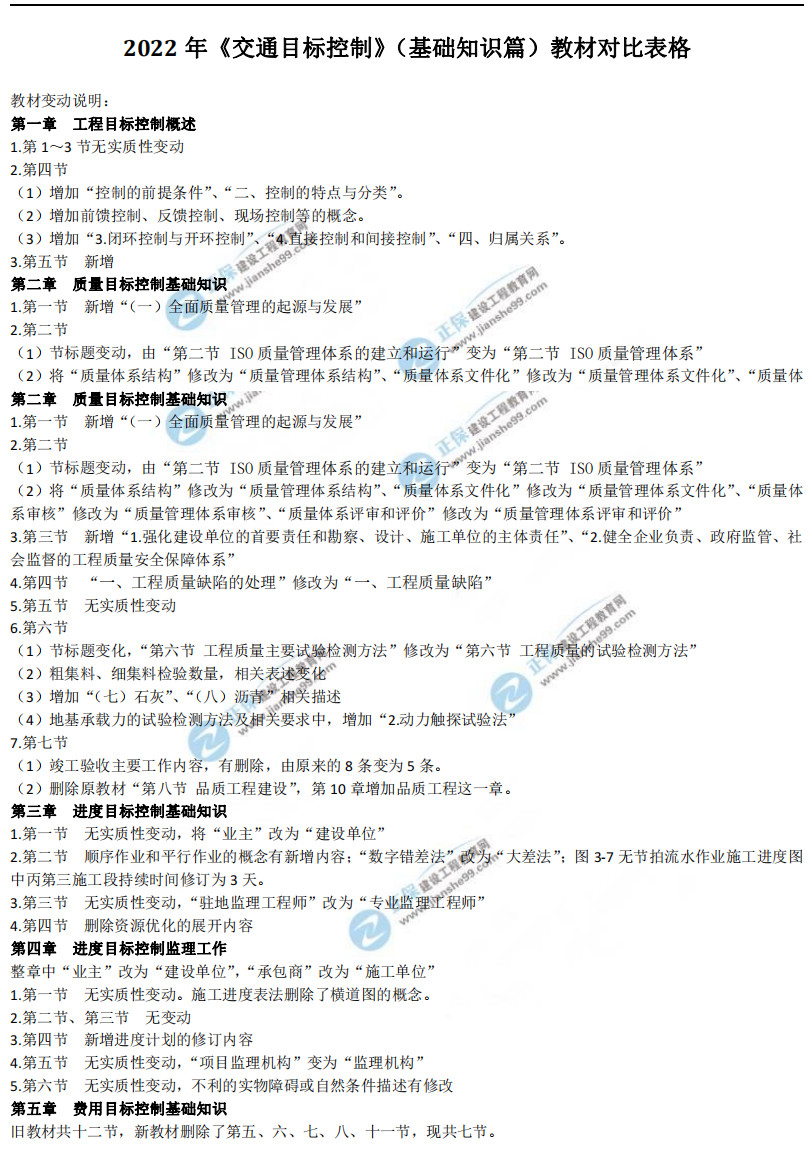 2022年監(jiān)理工程師目標(biāo)控制交通(基礎(chǔ)知識(shí)篇)教材對(duì)比
