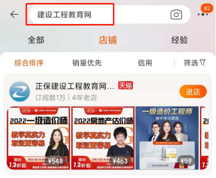 打開手機淘寶,搜索“正保建設(shè)工程教育網(wǎng)旗艦店”,點擊“進店”即可領(lǐng)取多重好禮!