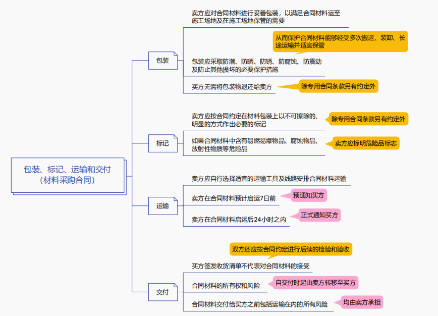 2024年監(jiān)理工程師備考已經開始,以下是為考生準備的包裝、標記、運輸和交付(材料采購合同)思維導圖,希望對考生有幫助~