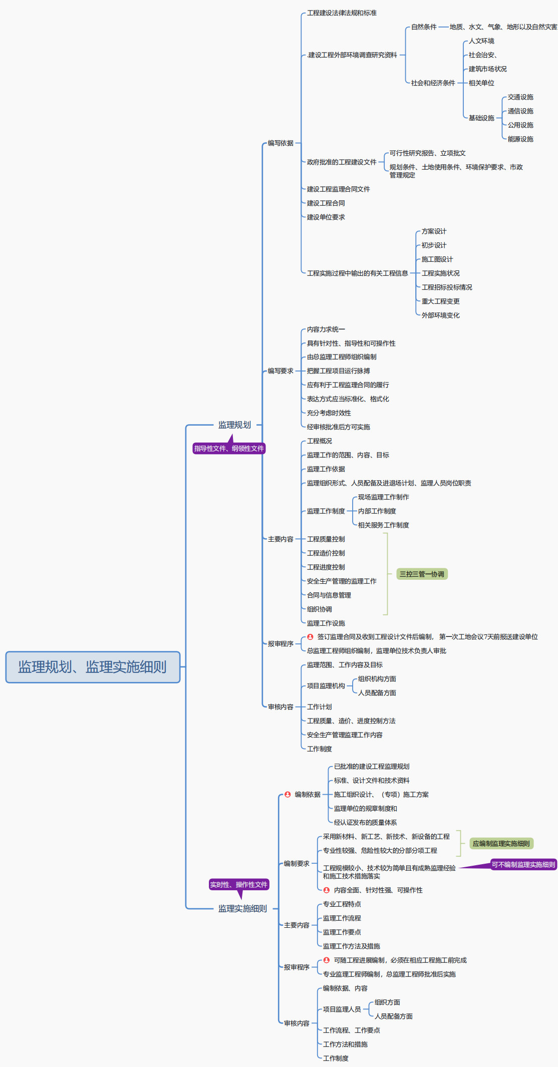 監(jiān)理工程師理論和法規(guī)監(jiān)理規(guī)劃、監(jiān)理實(shí)施細(xì)則思維導(dǎo)圖