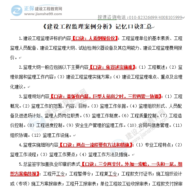 2024年監(jiān)理備考已經(jīng)在沖刺階段,這個(gè)階段掌握有效的學(xué)習(xí)方法很重要,可以幫助考生事半功倍的學(xué)習(xí),很多考生反饋知識(shí)點(diǎn)難記憶,這里給大家整理了高效記憶口訣,助力考生備考。