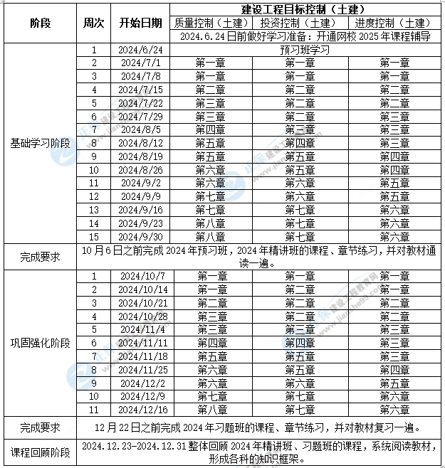 2025年監(jiān)理工程師土建控制學(xué)習(xí)計劃時間表