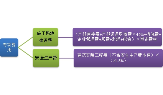 專(zhuān)項(xiàng)費(fèi)用由兩部分組成,包括施工場(chǎng)地建設(shè)費(fèi)和安全生產(chǎn)費(fèi)。
