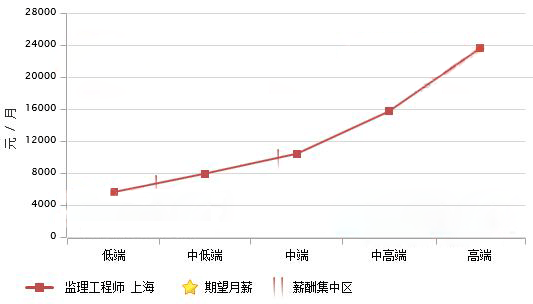 2015年上海監(jiān)理工程師平均薪酬:10543元。各階段工資水平如下圖: