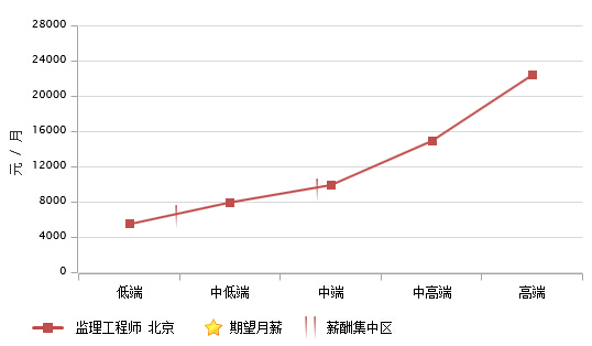 2015年北京監(jiān)理工程師平均薪酬:10013元。各階段工資水平如下圖: