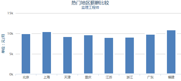 北上廣加上沿海省份都是監(jiān)理工程師的熱門地區(qū)。薪資情況:北京:10013元、上海:10543元、天津:9323元、重慶:9763元、江蘇:9143元、浙江:9145元、廣東:9871元、福建:10929元。