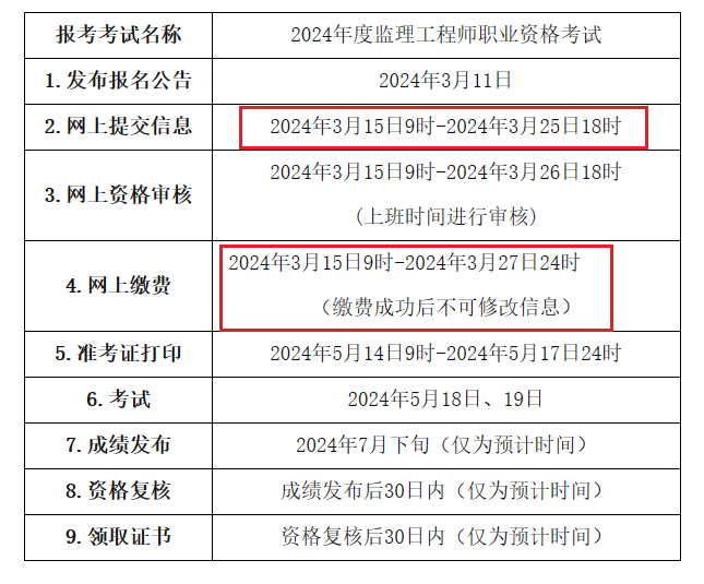 根據(jù)《人力資源社會保障部辦公廳關(guān)于2024年度專業(yè)技術(shù)人員職業(yè)資格考試計(jì)劃及有關(guān)事項(xiàng)的通知》(人社廳發(fā)〔2024〕1號)要求,2024年度監(jiān)理工程師職業(yè)資格考試于5月18日、19日舉行,現(xiàn)將有關(guān)事項(xiàng)通知如下: